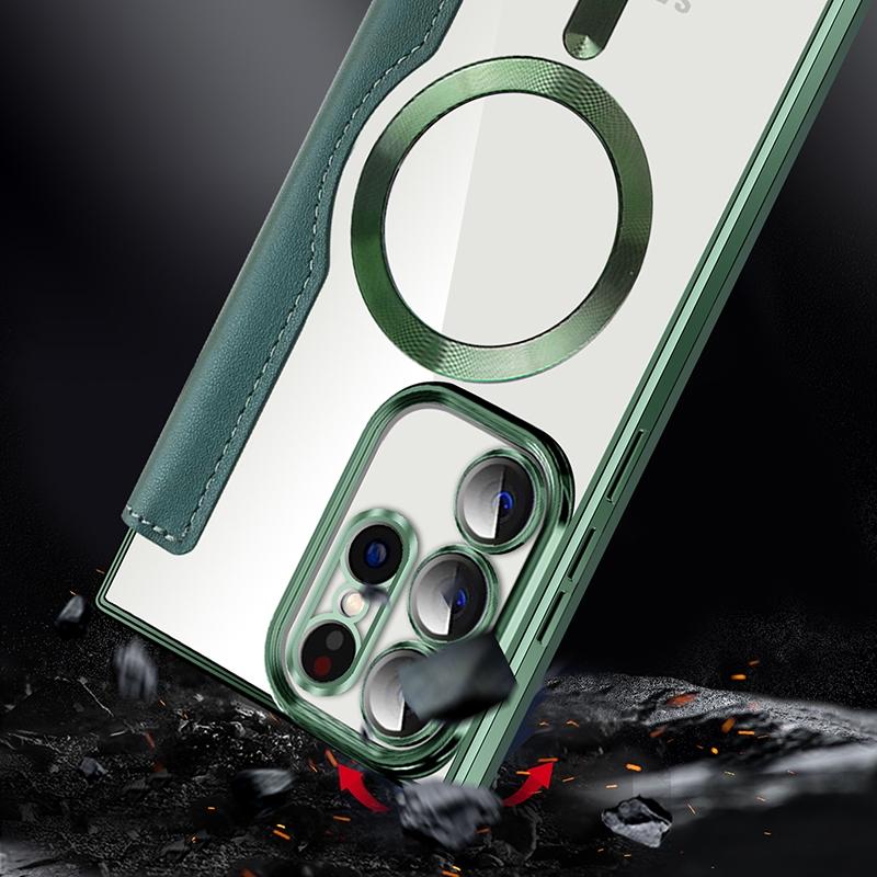 Θήκη τηλεφώνου δερμάτινη με μαγνητική σύνδεση MagSafe, αντι-κλοπής RFID για Samsung Galaxy S23+ 5G (Σκούρο Μωβ)