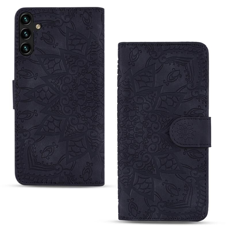 For Samsung Galaxy S23+ 5G Mandala Embossed Dual-Fold Calf Leather Phone Case(Black)