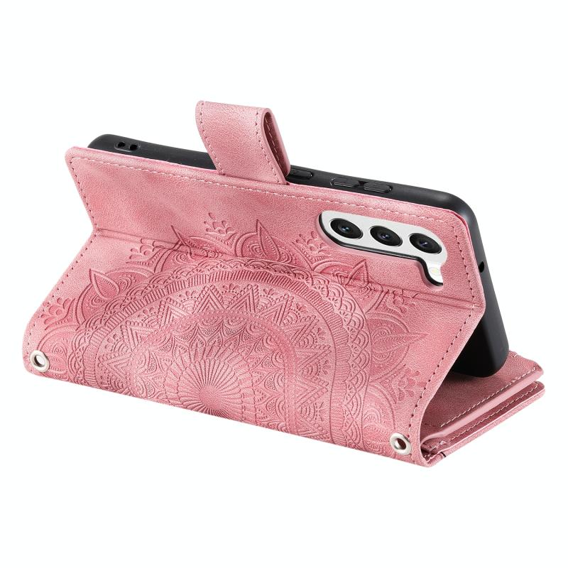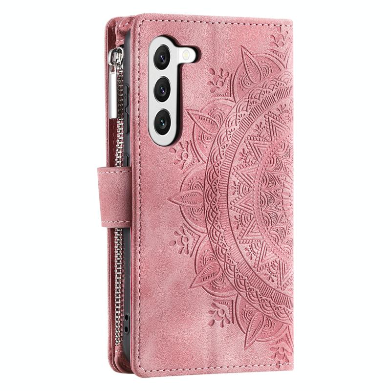 For Samsung Galaxy S23 5G Multi-Card Totem Zipper Leather Phone Case(Pink)