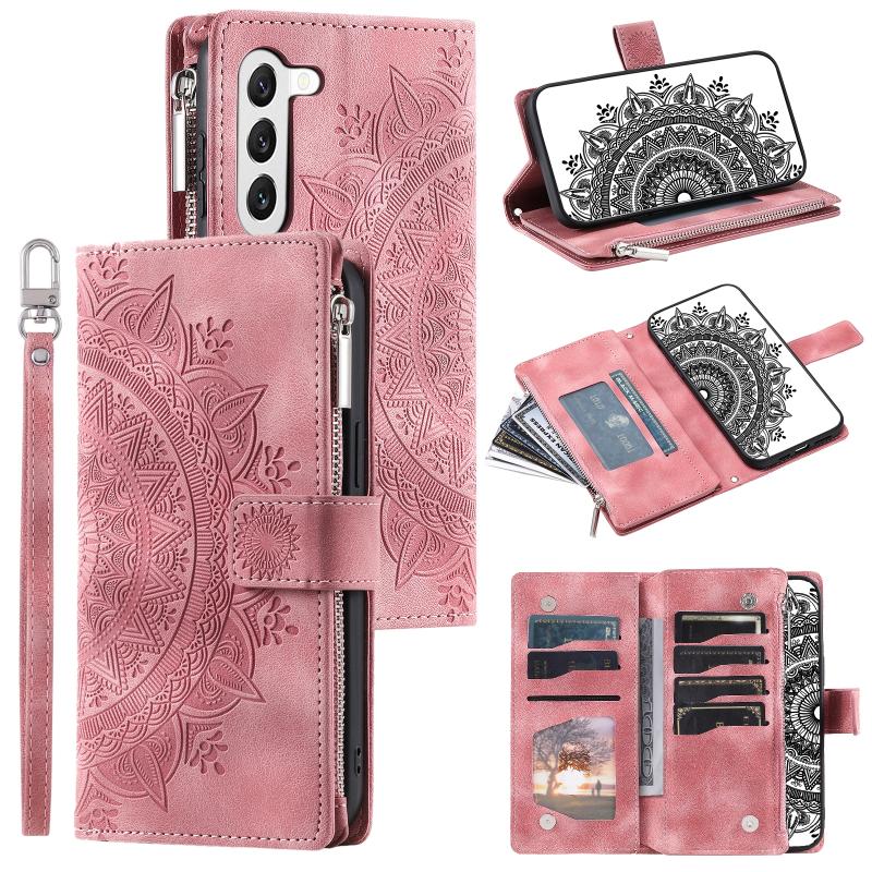 For Samsung Galaxy S23+ 5G Multi-Card Totem Zipper Leather Phone Case(Pink)