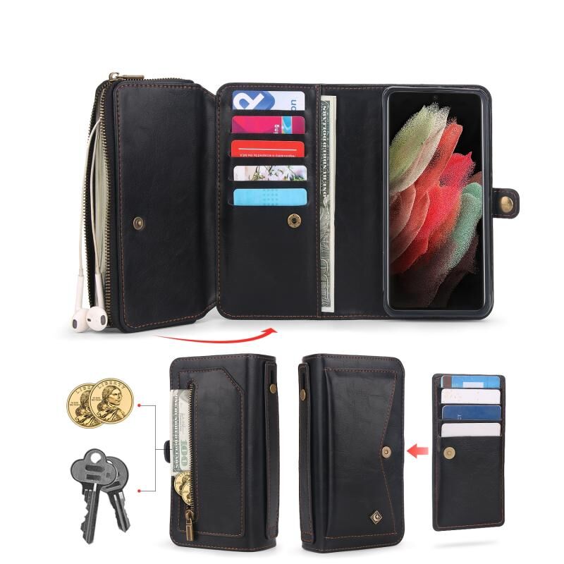 Για Samsung Galaxy S23 5G Πολυλειτουργικό φερμουάρ πορτοφόλι δερμάτινη θήκη τηλεφώνου (Μαύρο)