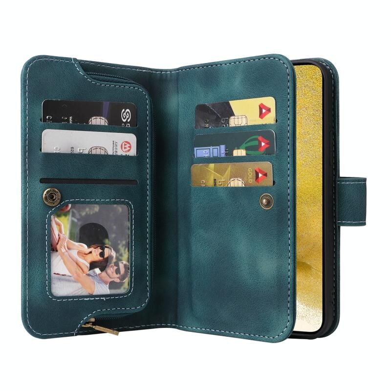 Για Samsung Galaxy S23 5G Πολυλειτουργική κάρτα Slot φερμουάρ πορτοφόλι δερμάτινη θήκη τηλεφώνου (μπλε)