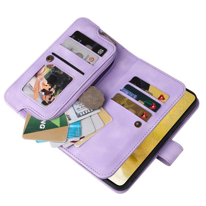 Για Samsung Galaxy S23 + 5G πολυλειτουργική κάρτα Slot φερμουάρ πορτοφόλι δερμάτινη θήκη τηλεφώνου (μωβ)