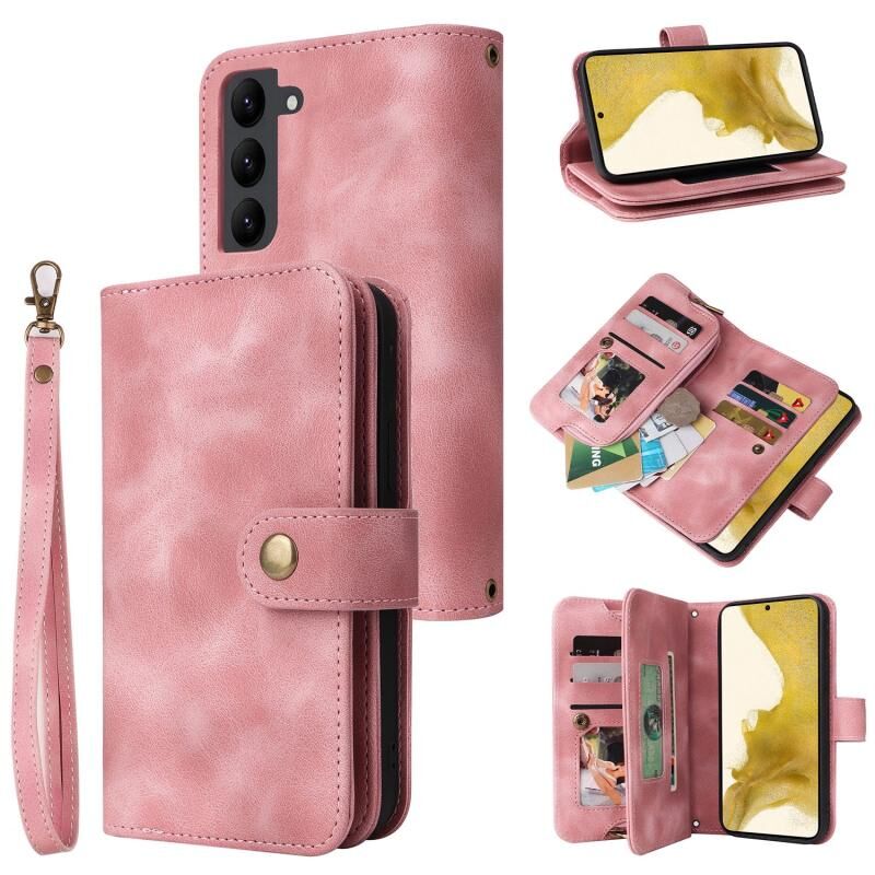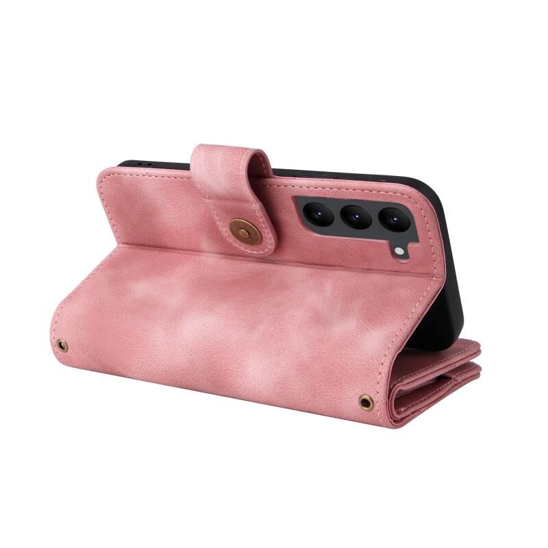 Για Samsung Galaxy S23 5G Πολυλειτουργική κάρτα Slot φερμουάρ πορτοφόλι δερμάτινη θήκη τηλεφώνου (Rose Gold)