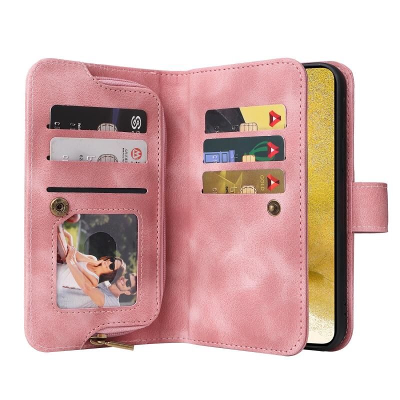 Για Samsung Galaxy S23 + 5G πολυλειτουργική κάρτα Slot φερμουάρ πορτοφόλι δερμάτινη θήκη τηλεφώνου (Rose Gold)