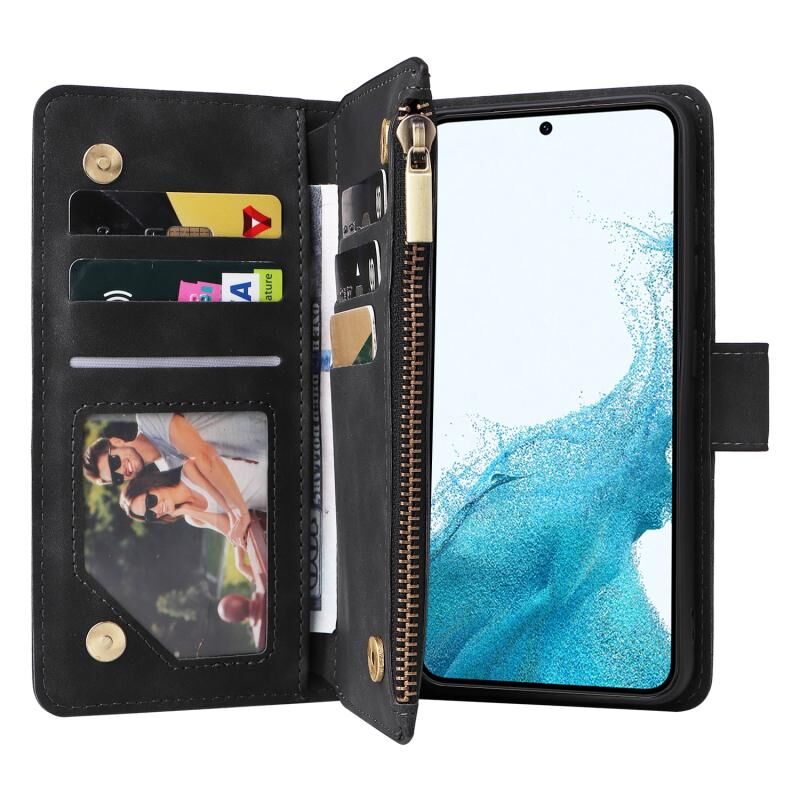 For Samsung Galaxy S23 5G Multifunctional Frosted Zipper Wallet Leather Phone Case(Black)