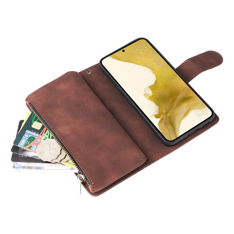Για Samsung Galaxy S23 + 5G πολυλειτουργικό παγωμένο φερμουάρ πορτοφόλι δερμάτινη θήκη τηλεφώνου (καφέ)