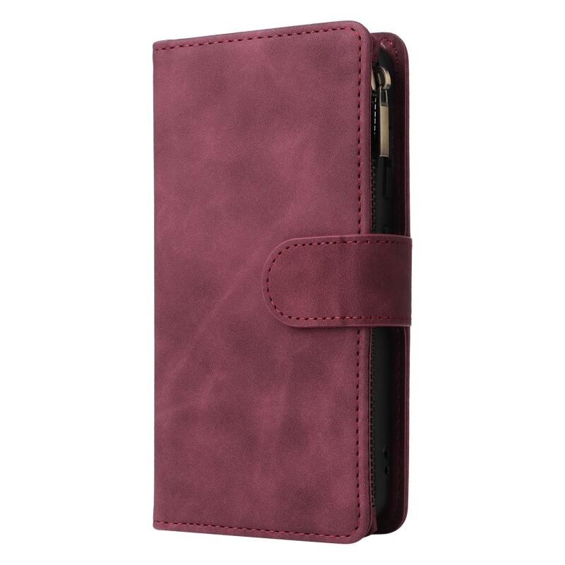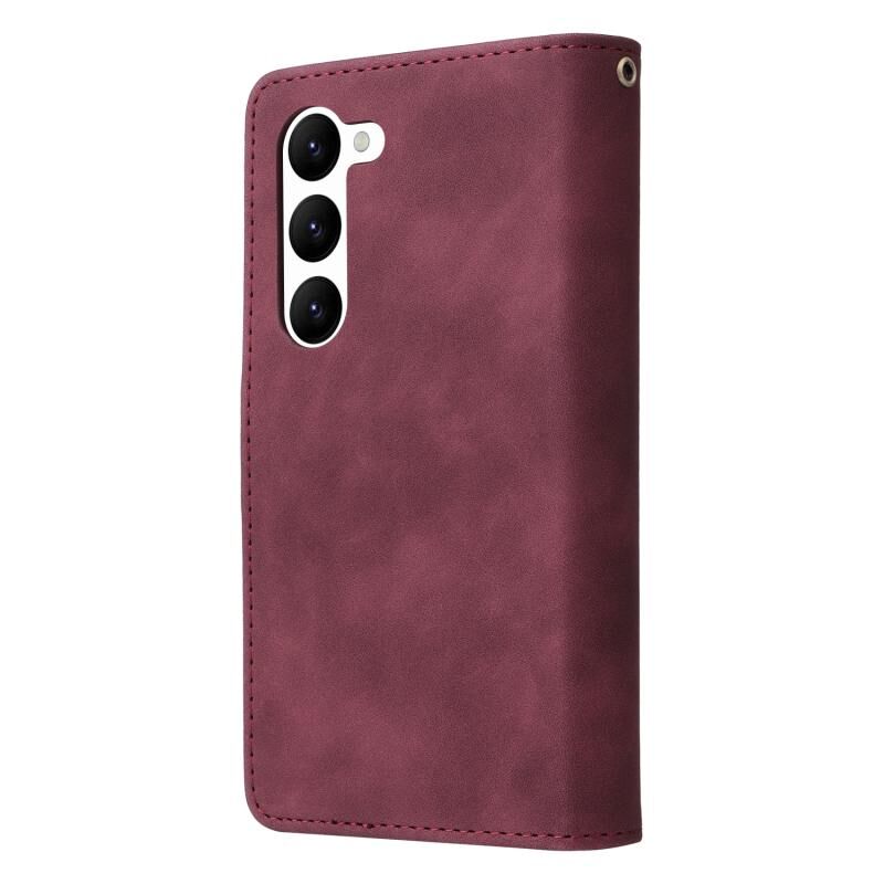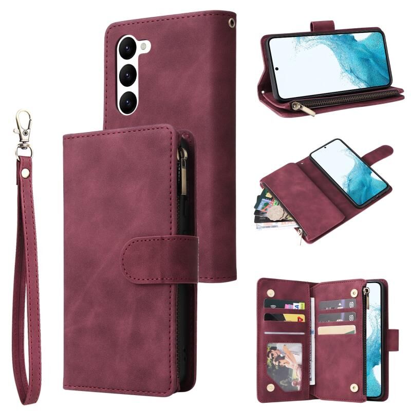 Για Samsung Galaxy S23 5G Πολυλειτουργικό παγωμένο φερμουάρ πορτοφόλι δερμάτινη θήκη τηλεφώνου (κόκκινο κρασί)