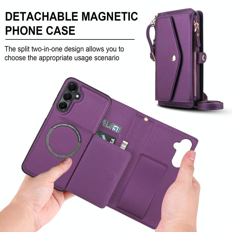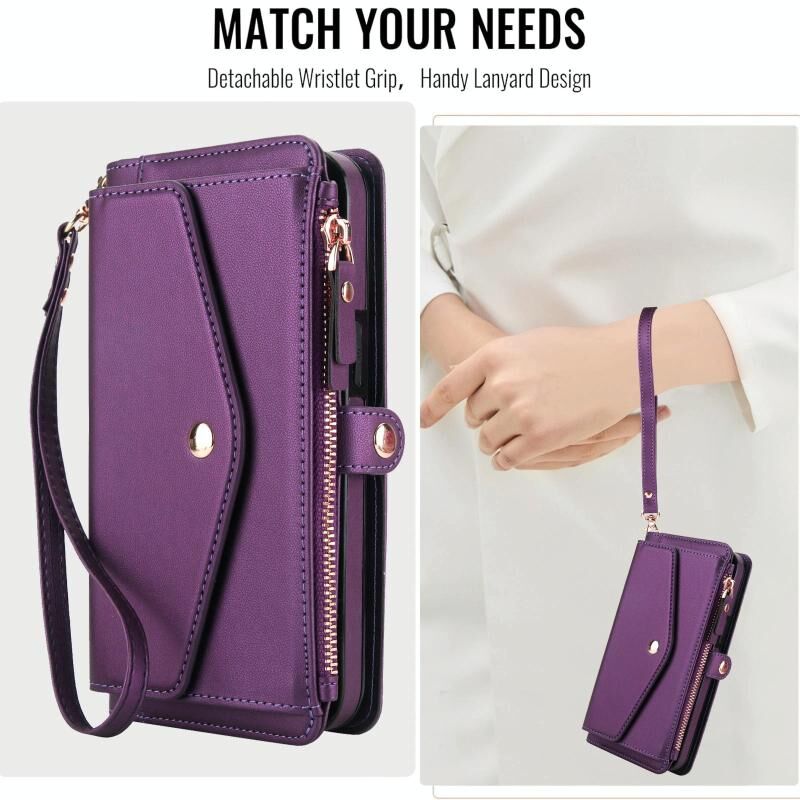 Για Samsung Galaxy S23 5G Δερμάτινη Θήκη Πορτοφόλι με Λουρί (Σκούρο Μωβ)