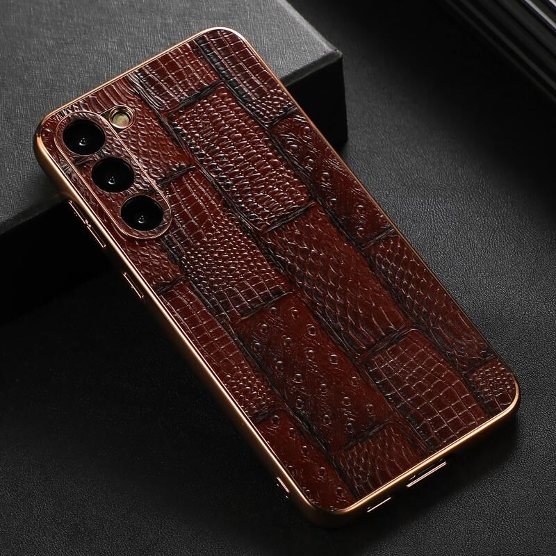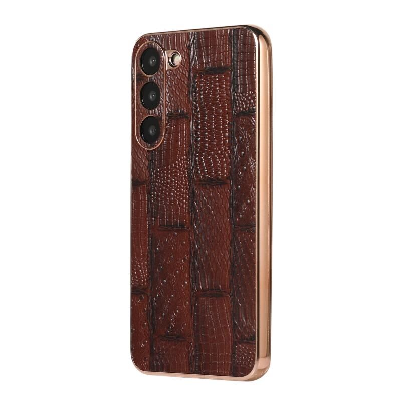 Θήκη τηλεφώνου Samsung Galaxy S23+ 5G Nano Electroplate Mahjong Υφή Δέρματος (Καφέ)