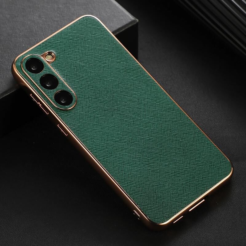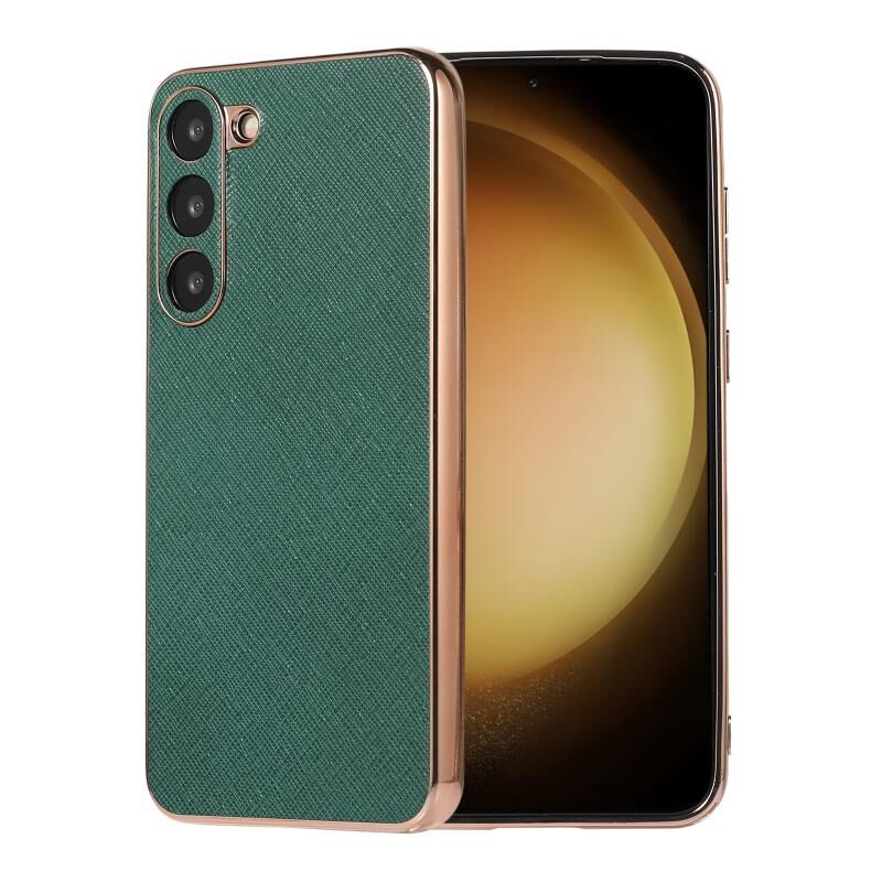 Θήκη τηλεφώνου από γνήσιο δέρμα με σταυρωτή υφή και ηλεκτρολυτική επίστρωση για Samsung Galaxy S23+ 5G (Μπλε)