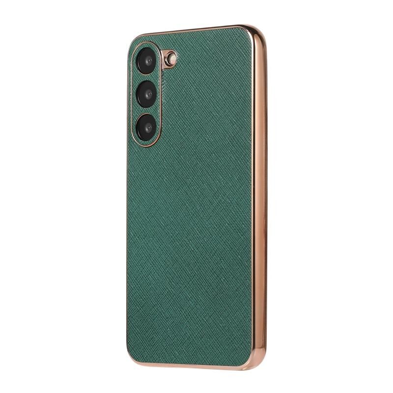 For Samsung Galaxy S23 5G Nano Electroplating Cross Texture Genuine Leather Phone Case(Green)