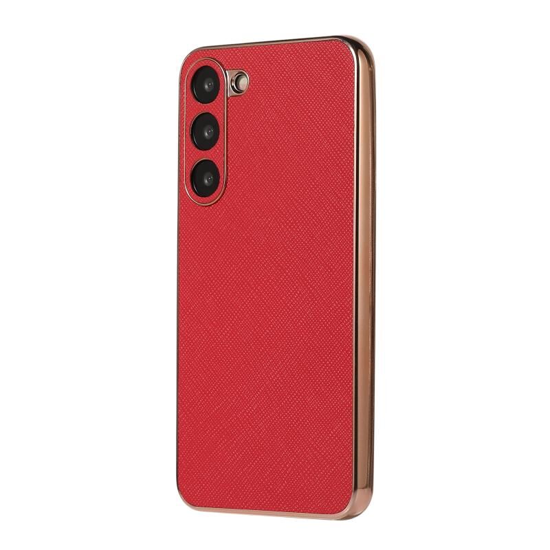 For Samsung Galaxy S23+ 5G Nano Electroplating Cross Texture Genuine Leather Phone Case(Red)