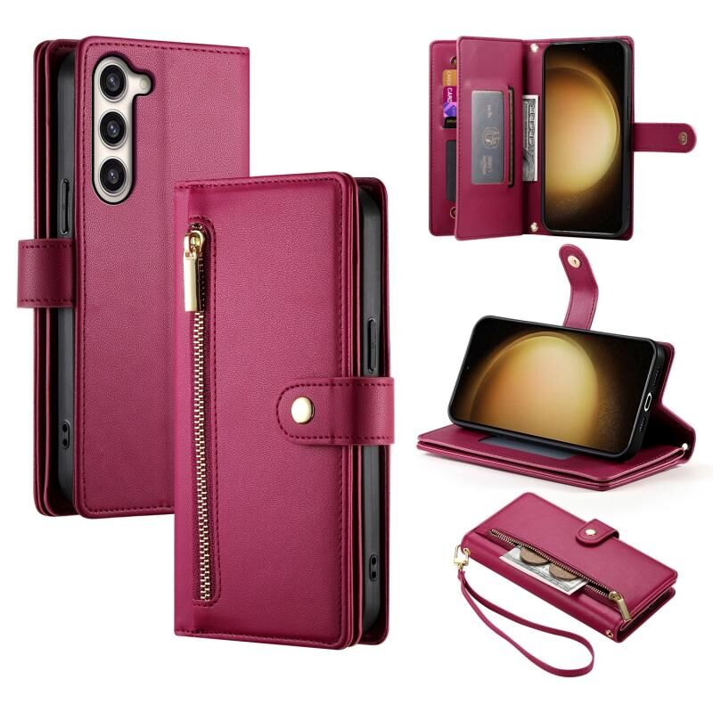 For Samsung Galaxy S23+ 5G Nine Card-slot Zipper Wallet Bag Leather Phone Case(Red)