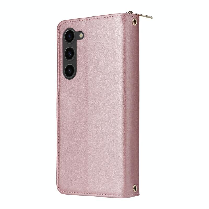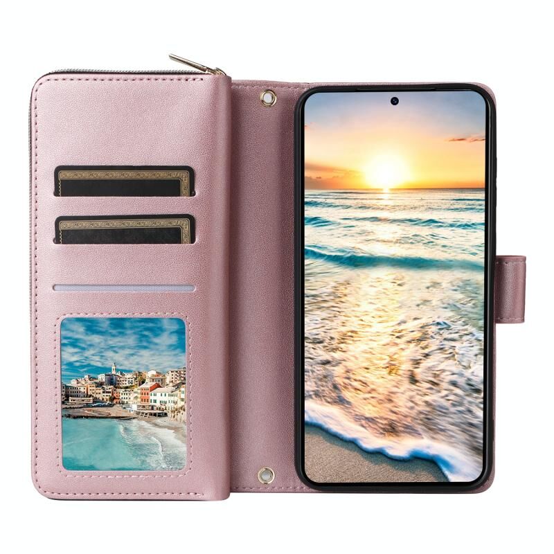 Για Samsung Galaxy S23 5G εννέα-κάρτα Slots φερμουάρ πορτοφόλι τσάντα δερμάτινη θήκη τηλεφώνου (Rose Gold)