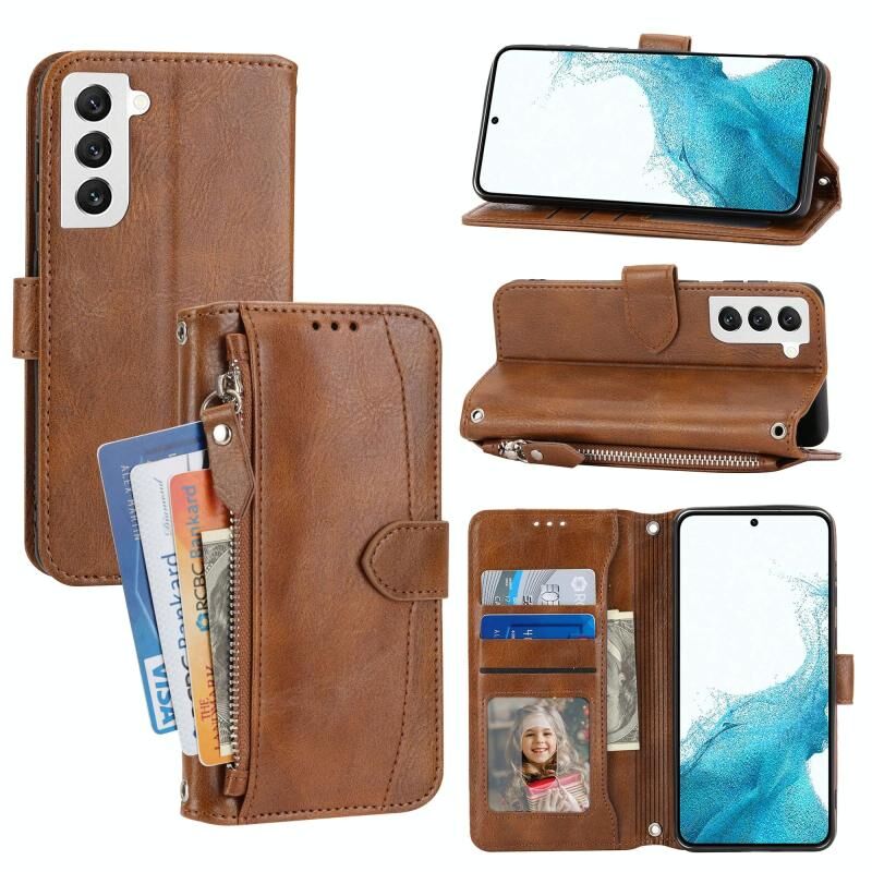 Για Samsung Galaxy S23 5G Oil Skin φερμουάρ πορτοφόλι δερμάτινη θήκη τηλεφώνου (καφέ)