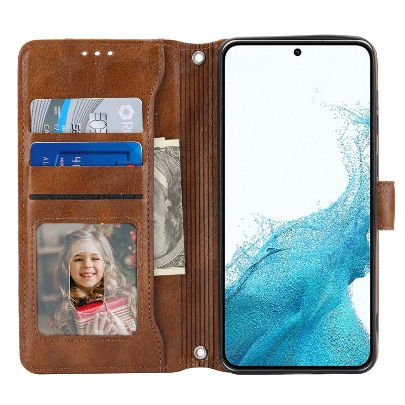 Για Samsung Galaxy S23+ 5G Oil Skin φερμουάρ πορτοφόλι δερμάτινη θήκη τηλεφώνου (καφέ)