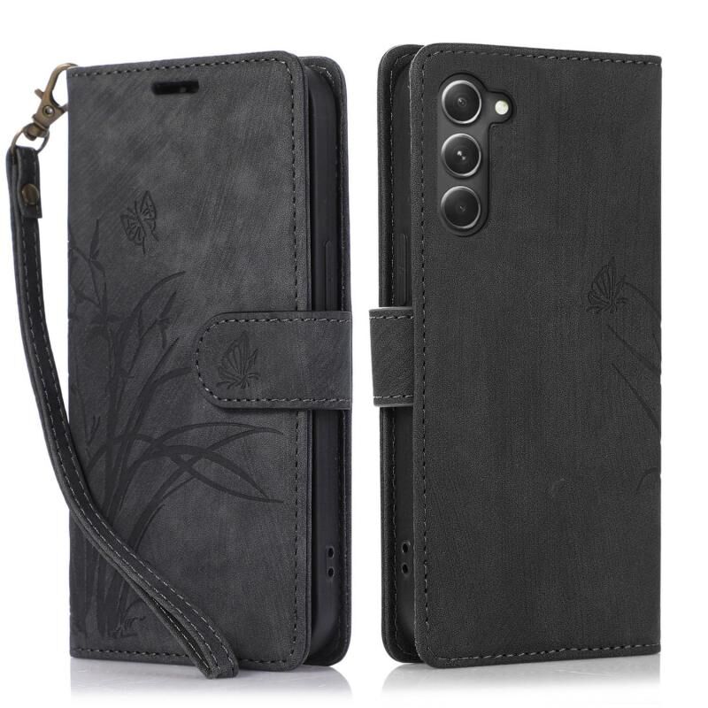 For Samsung Galaxy S23+ 5G Orchid Butterfly Embossed Leather Phone Case(Black)