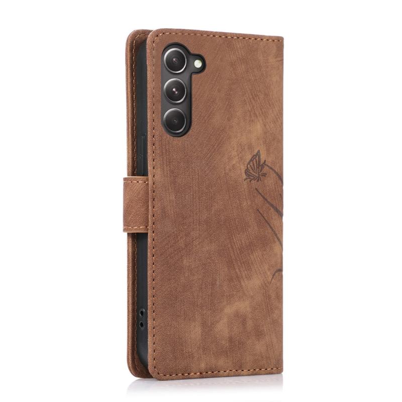 For Samsung Galaxy S23 5G Orchid Butterfly Embossed Leather Phone Case(Brown)