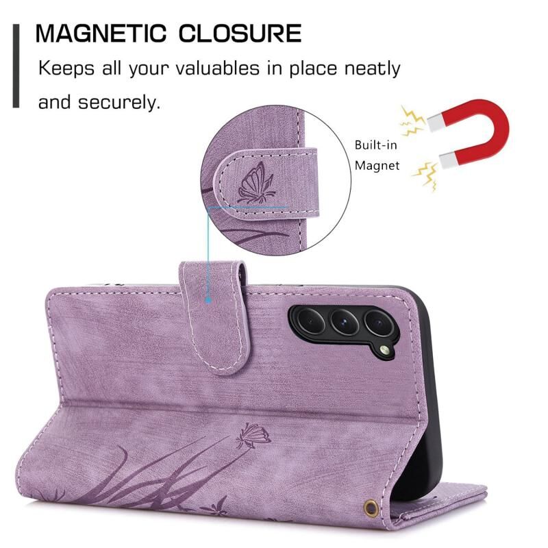 For Samsung Galaxy S23 5G Orchid Butterfly Embossed Leather Phone Case(Purple)