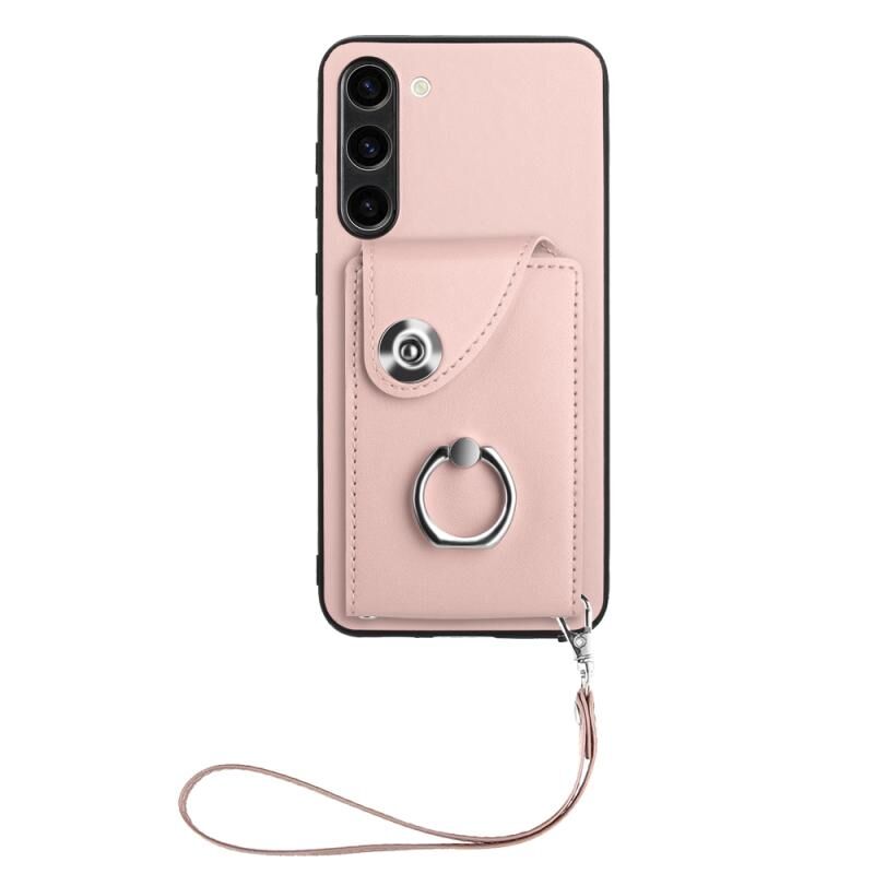 Για Samsung Galaxy S23 5G Οργάνου κάρτα τσάντα δαχτυλίδι κάτοχος PU υπόθεση τηλεφώνου με κορδόνι (ροζ)