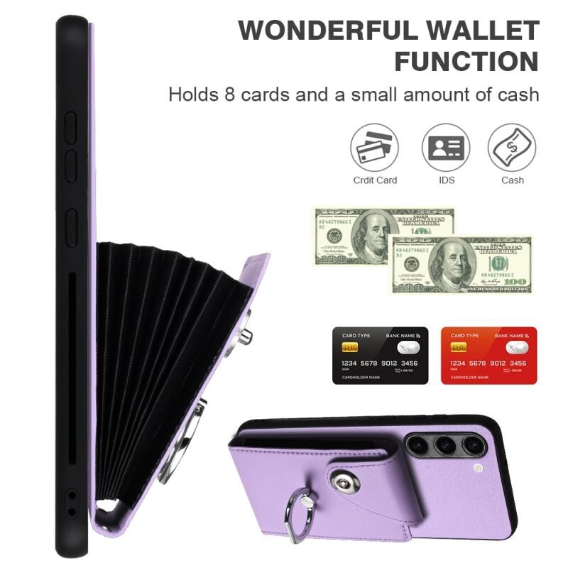Για Samsung Galaxy S23+ 5G Οργανική κάρτα τσάντα τσάντα δαχτυλίδι κάτοχος PU υπόθεση τηλεφώνου με κορδόνι (Μωβ)