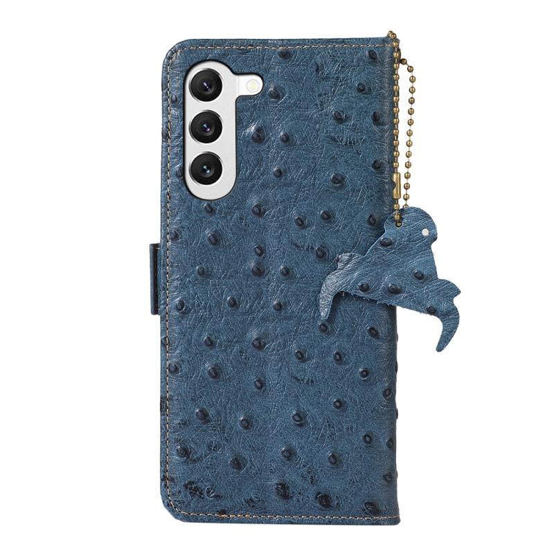 Θήκη τηλεφώνου Samsung Galaxy S23+ 5G από γνήσιο δέρμα με σχέδιο στρουθοκάμηλου και προστασία RFID (Μπλε)