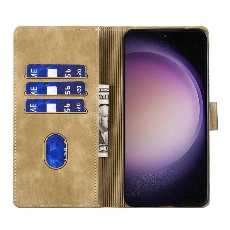 6. Λειτουργία Πορτοφολιού: Η δερμάτινη θήκη είναι εξοπλισμένη με τρεις υποδοχές καρτών και ένα διαμέρισμα για μετρητά, που μπορούν να χωρέσουν κάρτες και ένα μικρό ποσό χαρτονομισμάτων.