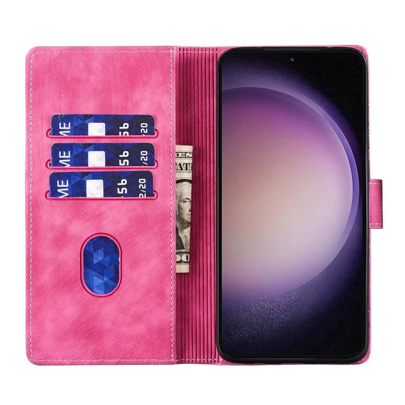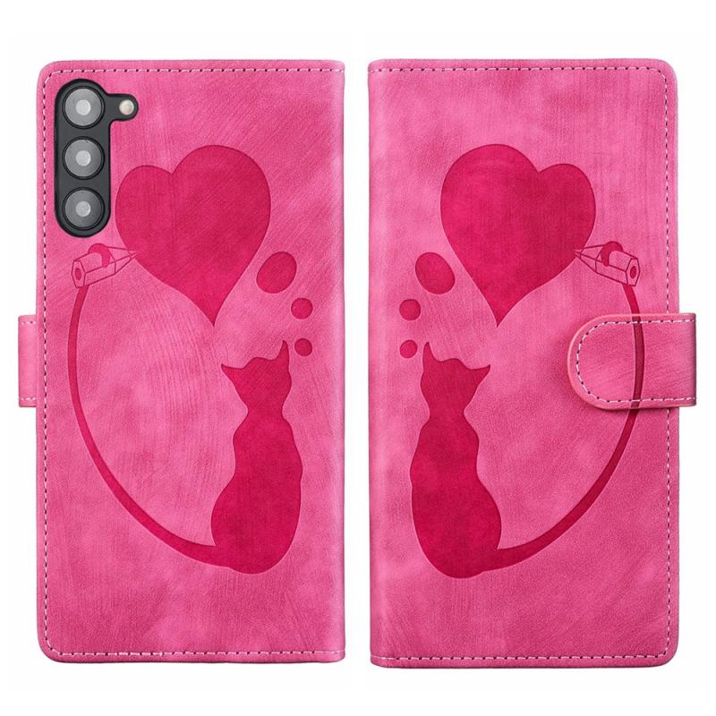For Samsung Galaxy S23 5G Pen Heart Cat Embossed Leather Phone Case(Pink)