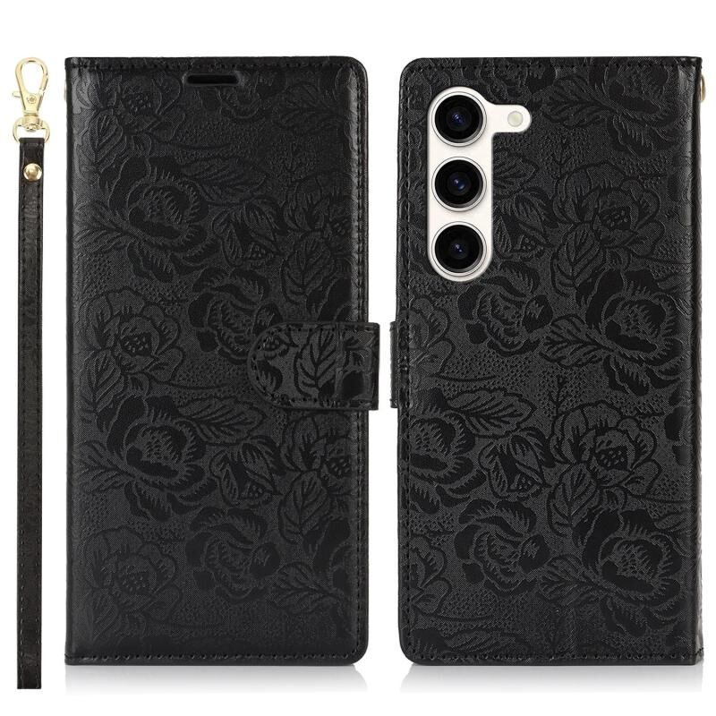 For Samsung Galaxy S23+ 5G Peony Flowers Imprint Leather Phone Case(Black)