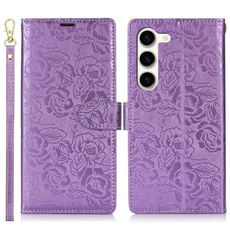 For Samsung Galaxy S23 5G Peony Flowers Imprint Leather Phone Case(Purple)