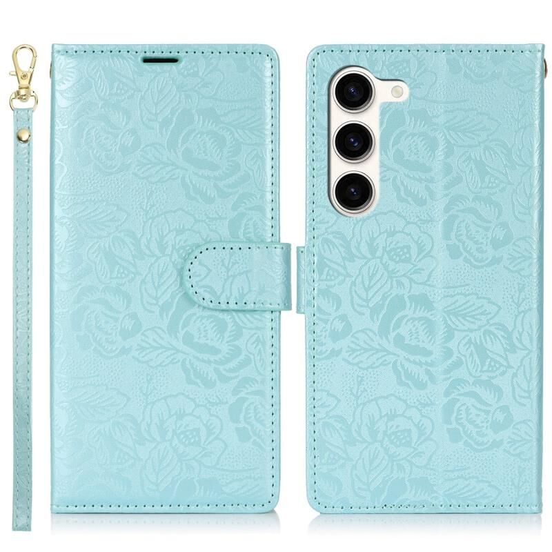 For Samsung Galaxy S23 5G Peony Flowers Imprint Leather Phone Case(Sky Blue)
