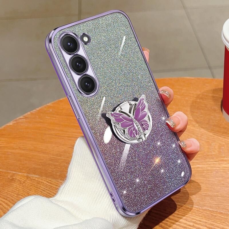 Για Samsung Galaxy S23 5G Επιμεταλλωμένο διαβάθμιση Glitter πεταλούδα κάτοχος TPU υπόθεση τηλεφώνου (μωβ)