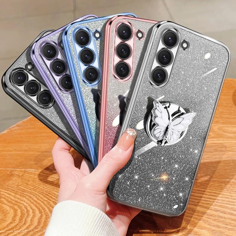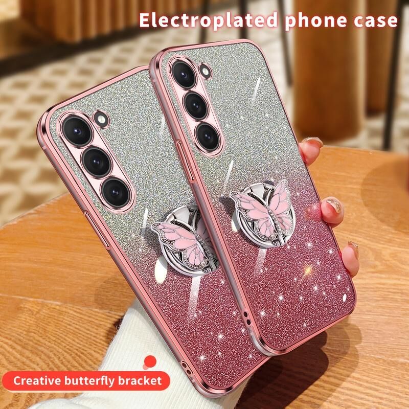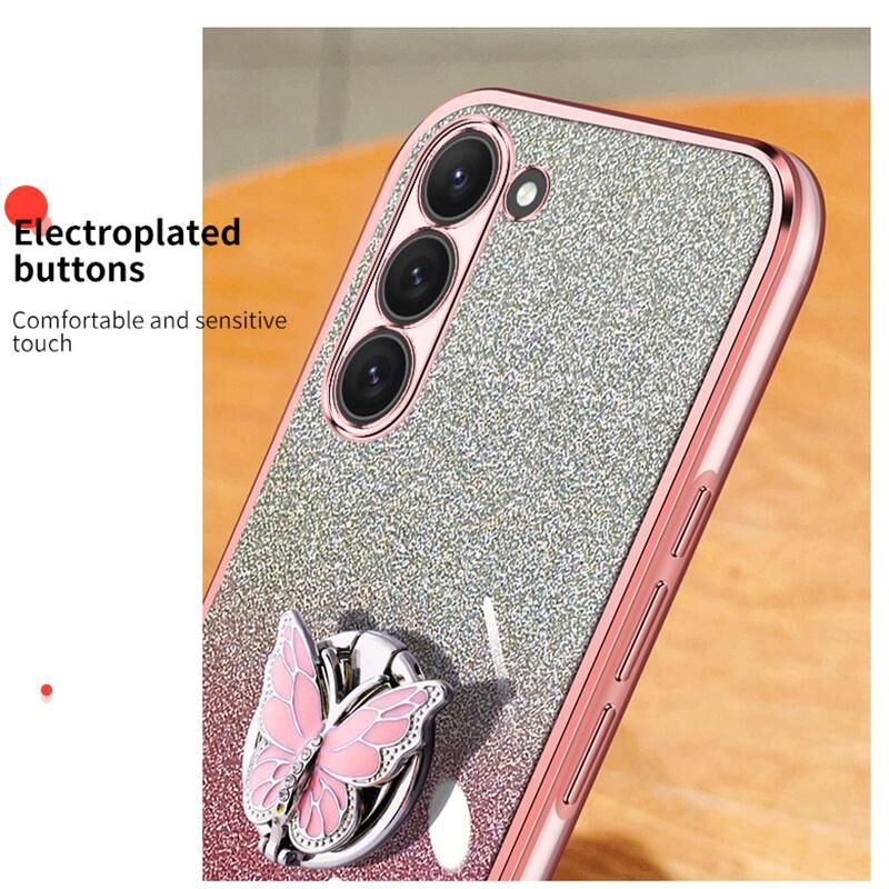 Για Samsung Galaxy S23 + 5G Επιμεταλλωμένο διαβάθμιση Glitter πεταλούδα κάτοχος TPU υπόθεση τηλεφώνου (μωβ)