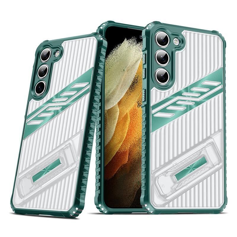 For Samsung Galaxy S23+ 5G Plating Holder PC Hybrid TPU Phone Case(Dark Green)