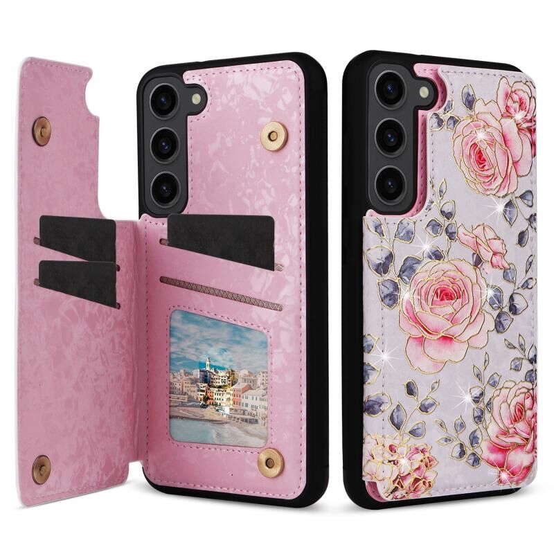 Θήκη τηλεφώνου με διπλή αγκράφα, αντι-κλοπής RFID, εκτυπωμένη για Samsung Galaxy S23+ 5G (Ροζ Παστοράλ)