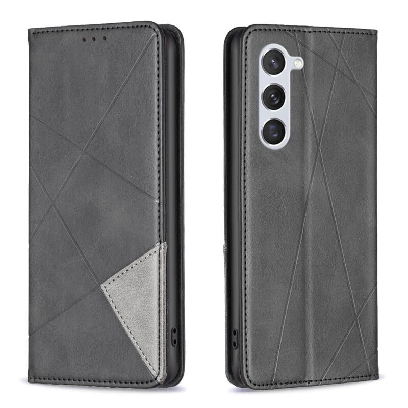 Για Samsung Galaxy S23 5G Prismatic Αόρατη μαγνητική δερμάτινη θήκη τηλεφώνου (Μαύρο)