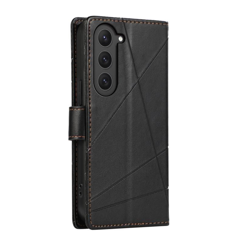 Θήκη τηλεφώνου Samsung Galaxy S23 5G από γνήσιο δέρμα PU με ανάγλυφη υφή και λεπτή γραμμή (Μπλε)