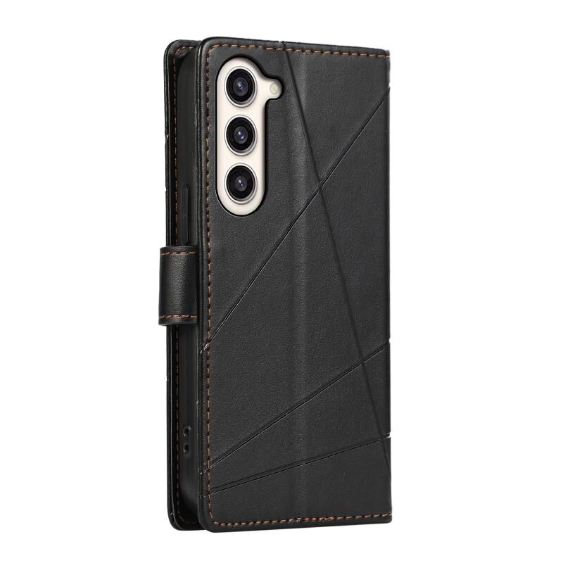 Θήκη τηλεφώνου για Samsung Galaxy S23+ 5G από γνήσιο δέρμα PU με ανάγλυφη υφή και λεπτή γραμμή (Μαύρο)