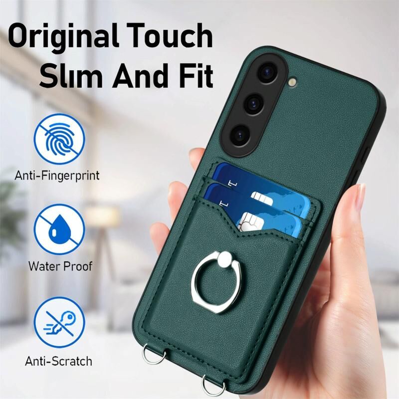 Για Samsung Galaxy S23 5G R20 Σταυρό Σχοινί δαχτυλίδι Κάτοχος κάρτας υπόθεση τηλεφώνου (πράσινο)