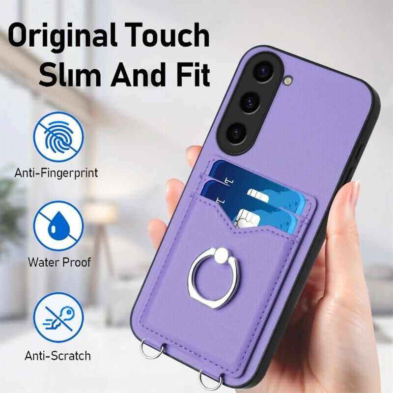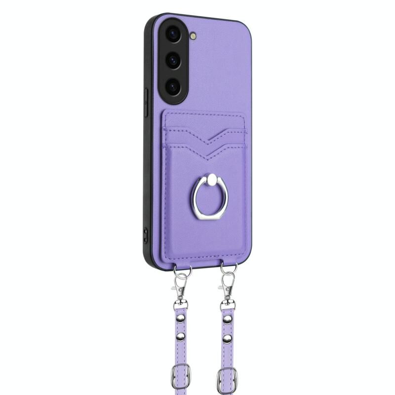 Για Samsung Galaxy S23 5G R20 Σταυρό Σχοινί δαχτυλίδι Κάτοχος κάρτας υπόθεση τηλεφώνου (μωβ)