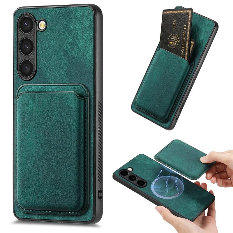 Για Samsung Galaxy S23+ 5G Ρετρό δερμάτινη τσάντα κάρτας μαγνητική θήκη τηλεφώνου (πράσινο)