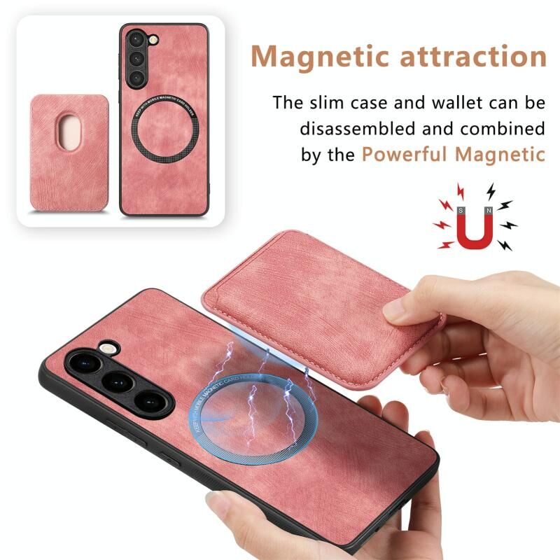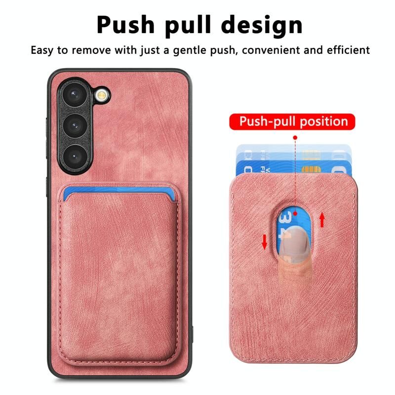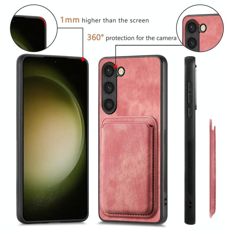 Για Samsung Galaxy S23+ 5G Ρετρό δερμάτινη τσάντα κάρτας μαγνητική θήκη τηλεφώνου (ροζ)