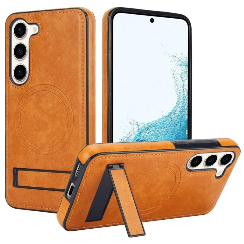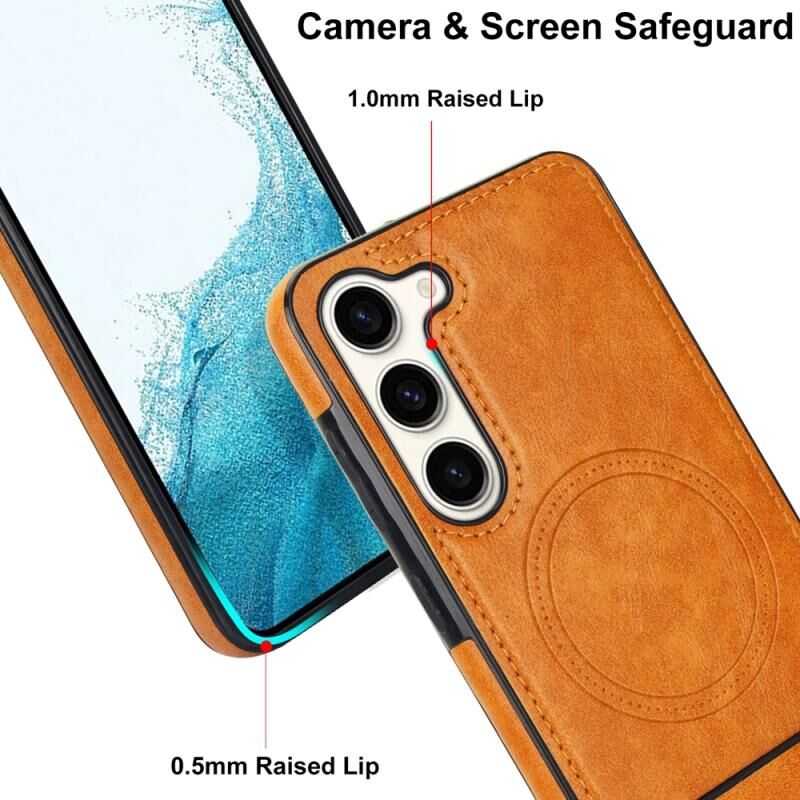Θήκη τηλεφώνου Samsung Galaxy S23 5G από δέρμα σε ρετρό στυλ με αόρατο στήριγμα και MagSafe (Λευκό)