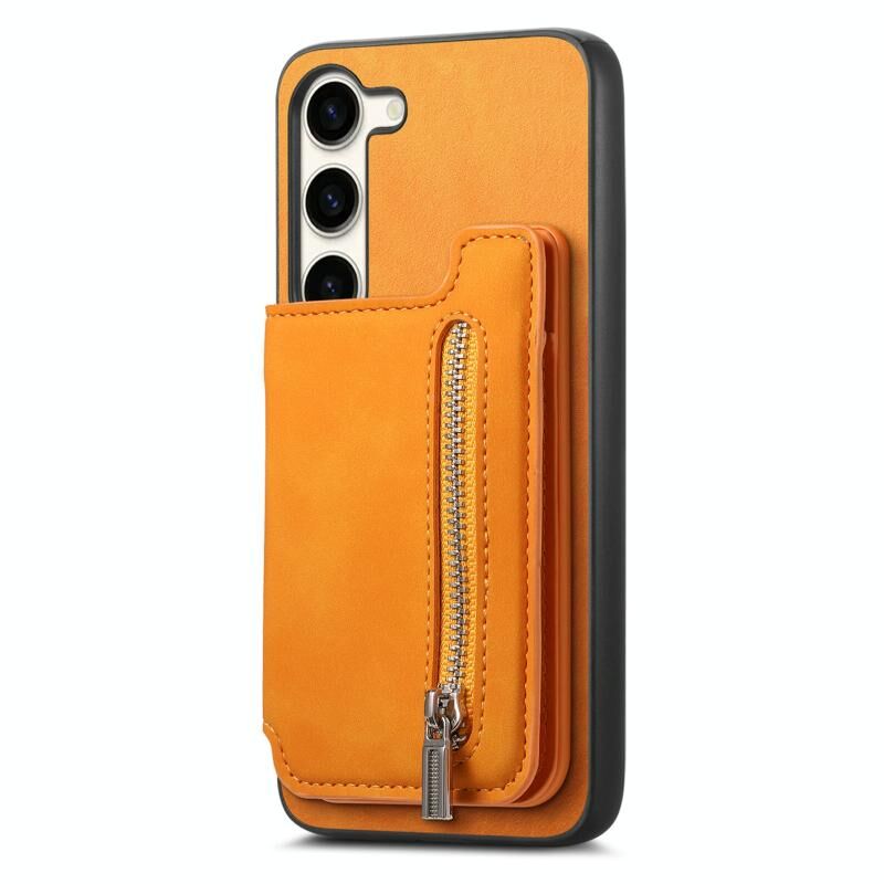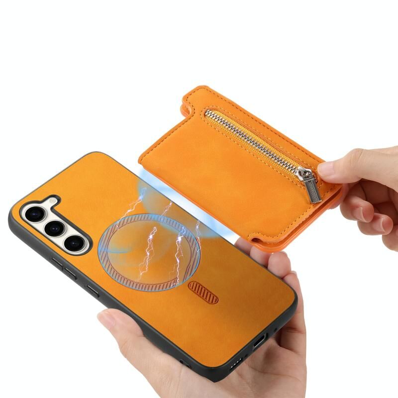 Θήκη κινητού Samsung Galaxy S23 5G με φερμουάρ, τσέπη για κάρτες και μαγνητική σύνδεση τύπου MagSafe (Κίτρινο)