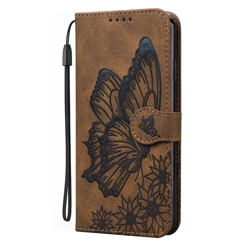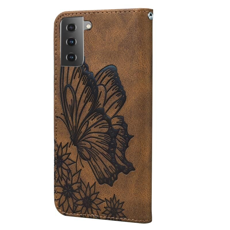 Θήκη τηλεφώνου Samsung Galaxy S23+ 5G, δερμάτινη, οριζόντια, με ανάγλυφο σχέδιο πεταλούδων και ρετρό υφή (Μαύρο)