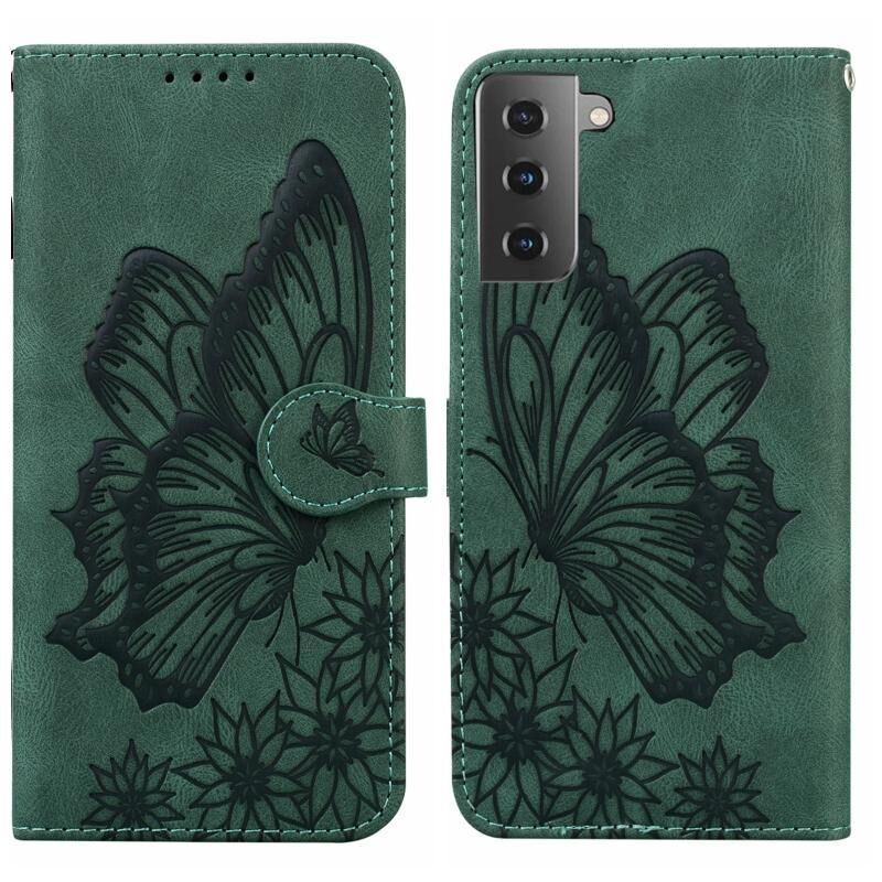 Θήκη τηλεφώνου Samsung Galaxy S23 5G, δερμάτινη, οριζόντια αναδίπλωση, με ανάγλυφο σχέδιο πεταλούδων και ρετρό αίσθηση (Μαύρο)