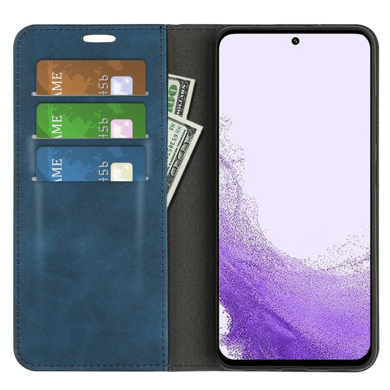 Για Samsung Galaxy S23 5G Retro-skin μαγνητική δερμάτινη θήκη τηλεφώνου αναρρόφησης (σκούρο μπλε)