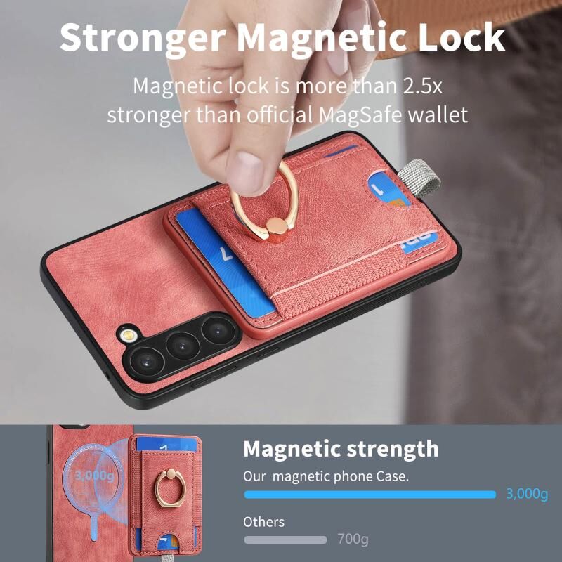 5. Το δερμάτινο πορτοφόλι διαθέτει ισχυρούς ενσωματωμένους μαγνήτες που του επιτρέπουν να κουμπώνει αβίαστα στη θέση του στο πίσω μέρος του τηλεφώνου σας, εύκολο στη χρήση και την αφαίρεση.