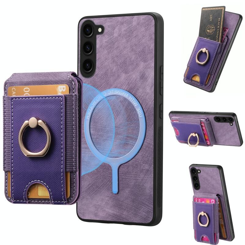 Για Samsung Galaxy S23+ 5G Retro Splitable μαγνητική στάση κάρτα τσάντα τσάντα δέρμα υπόθεση τηλεφώνου (μωβ)